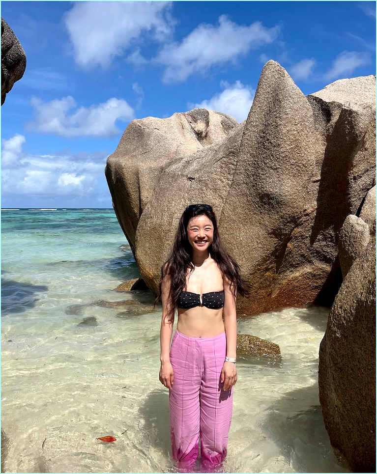 오마이걸 아린 시원한 끈나시에 반다나 코디