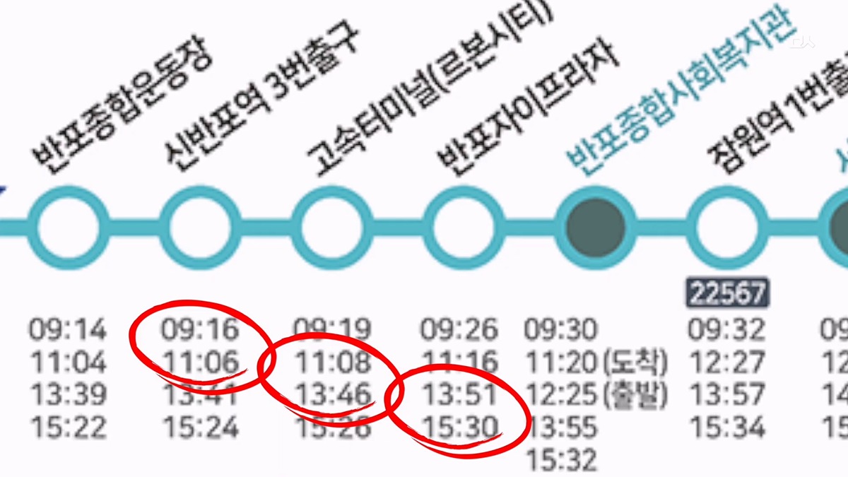배차간격이 짧은 것은 15분~17분, 길면 한시간에 한대씩.