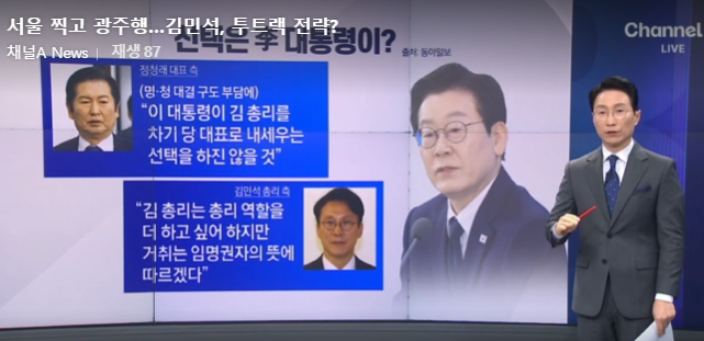 하지만 정 대표 측에서는 “이 대통령이 김 총리를 차기 당 대표로 내세우는 선택을 하진 않을 것”이라고 보고 있다. ‘국정 2인자’인 김 총리가 이 대통령의 허락을 얻어 당 대표에 출마하면 사실상 ‘명청’(이 대통령과 정 대표) 대리전의 구도로 흐를 수 있다는 것.