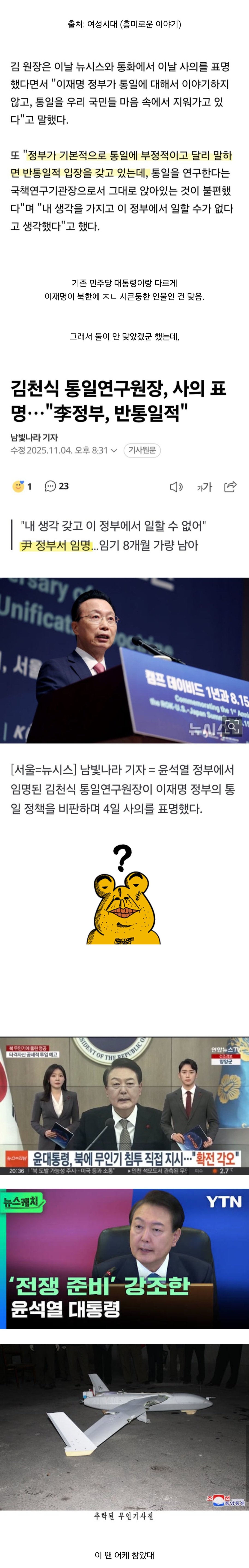 통일연구원장 : 이재명이 통일에 부정적이라 사표냄