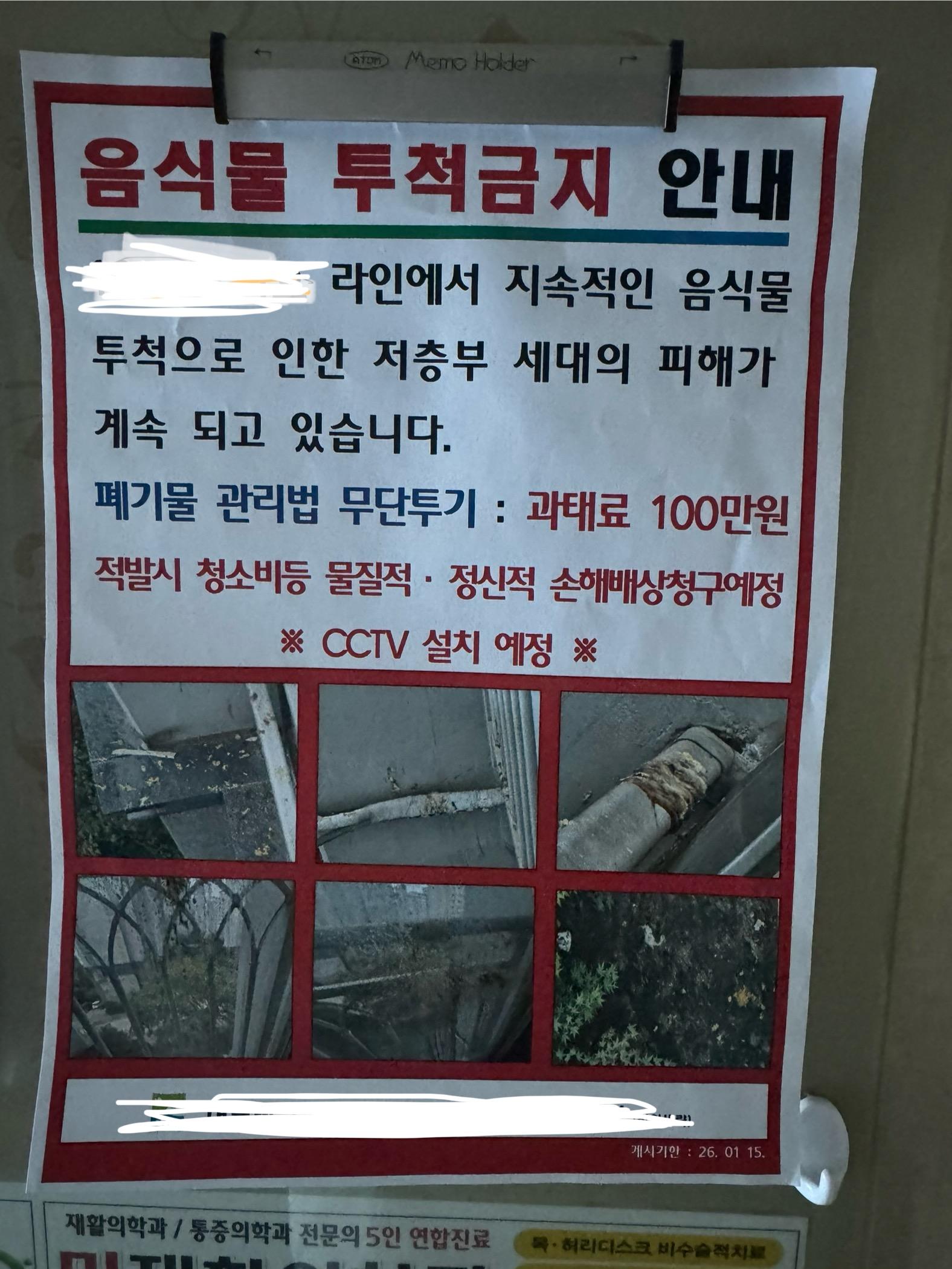 관리사무소에서 경고문을 부착해도 소용없네요..