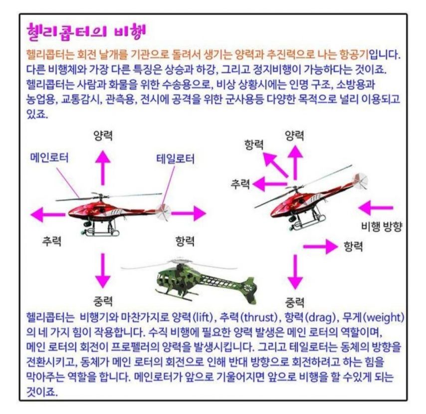 5. 헬기 조종이(비행원리가) 비행기보다 어렵다.