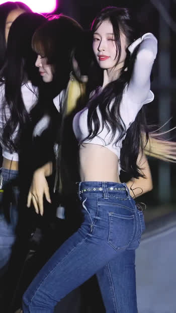 오마이걸 아린 흰 크롭티 청바지 허리라인 기립근