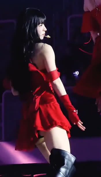 프로미스나인 박지원 이채영 빨간 프릴의상 검정 속바지 엉밑살 노출