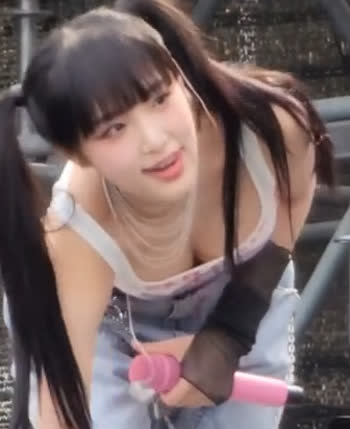 양갈래 최예나 물병 줍다가 방심하는 가슴골
