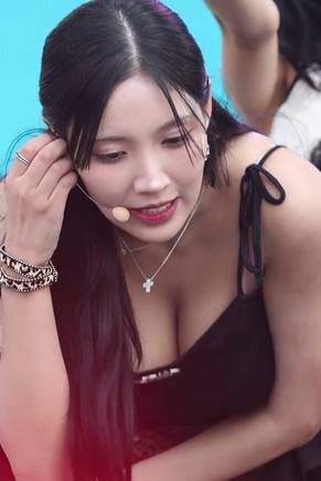 트와이스 쯔위 빨간 가죽 란제리룩 가슴골