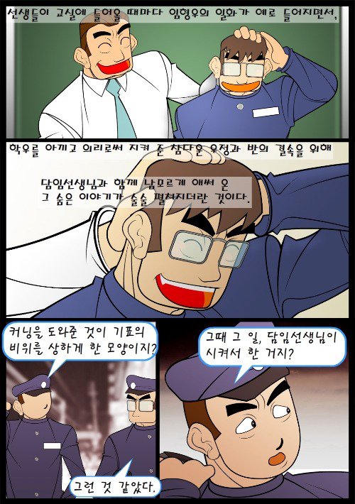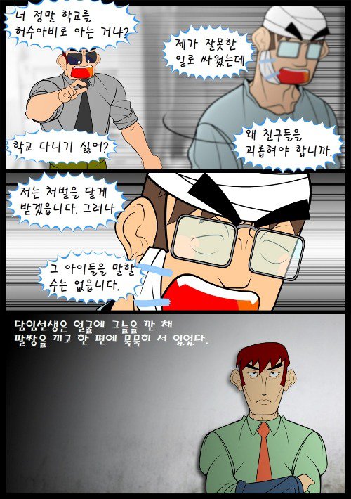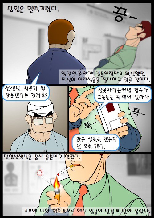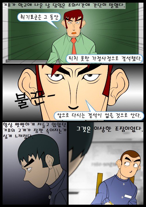 그리고  네 번째 페이지의 담임의 대사를 들어보면, 그가 컨닝 사건의 배후임을 알 수 있습니다.