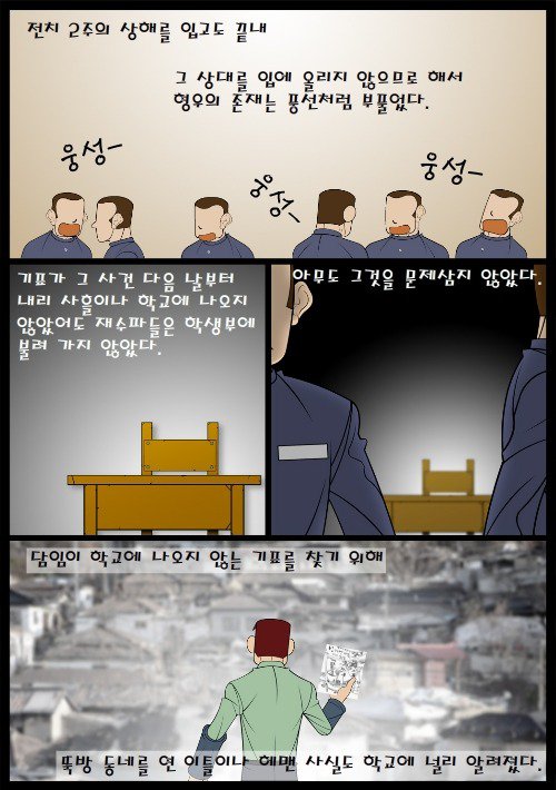 일곱 번째 페이지를 보면 담임은 이틀 동안 오로지 최기표의 집을 찾아 헤맵니다.