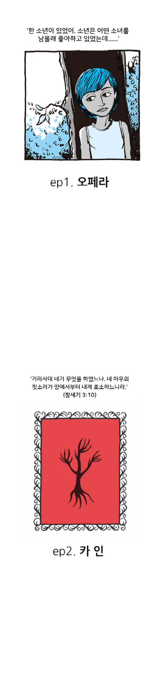 150페이지 가량의 만화였는데 웹툰화 했더니 고작 9화(에피소드 3개) 나오더군요..ㅜㅜ 무료쿠폰 쓰면 프롤로그 포함 3화까지는 무료로 볼 수 있습니다.