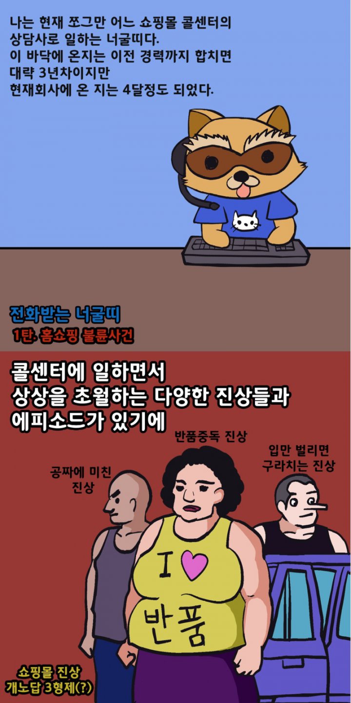 이 만화는 콜센터를 다니면서 제가 겪었던 실화를 바탕으로 그린 만화입니다.