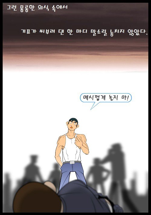 작품이 시작되자마자 등장하는 것은 최기표가 행사하는 "강렬한 폭력"입니다. 이를 통해 작가는 그가 가진 원시적인 폭력성을 독자들에게 각인시킵니다. 또한 이를 계기로 화자인 이유대는 최기표가 담임보다 훨씬 더 강하다고 믿게 되고, 그를 추종하게 됩니다. (화자의 이런 착각은 결말에서 주제를 강조하기 위한, "의도된 착각"이라 할 수 있습니다.)