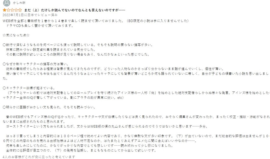 6월 30일. 2년 만에 발매된 오버로드 15권이 발매초반부터 시리즈 최악의 평가를받고 있다.