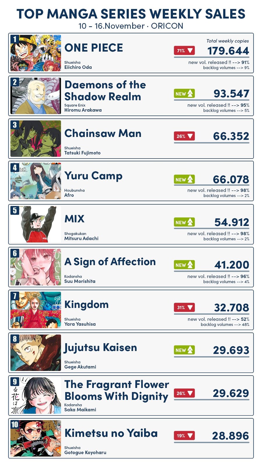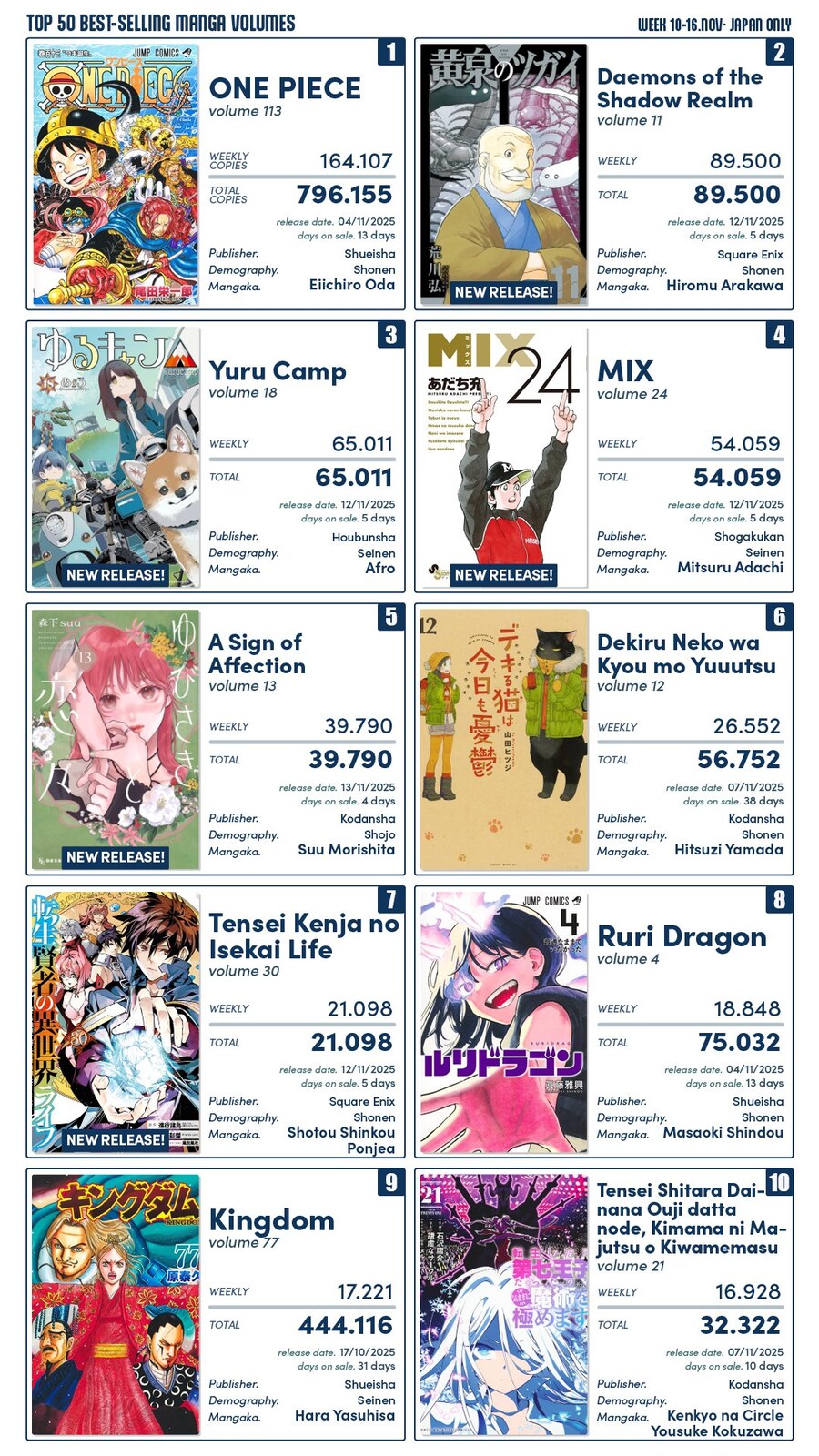 11월 2주차 일본 만화책 판매량 순위