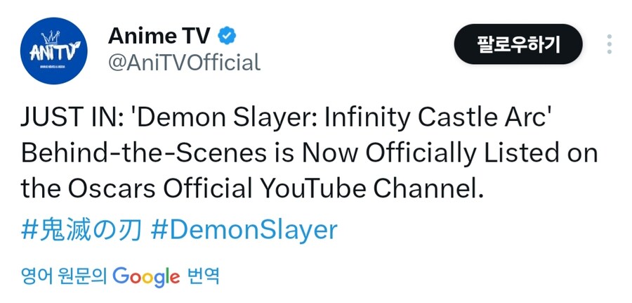 오스카 공식 유튜브 채널에 공식 등록되었습니다