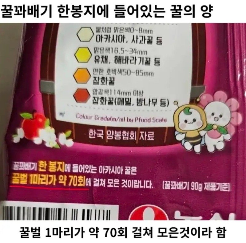 꿀꽈배기 90g 한 봉에 꿀이 3.2% 대략 2.88g 니까 40mg 기준으로 70회라고 한 거겠네요