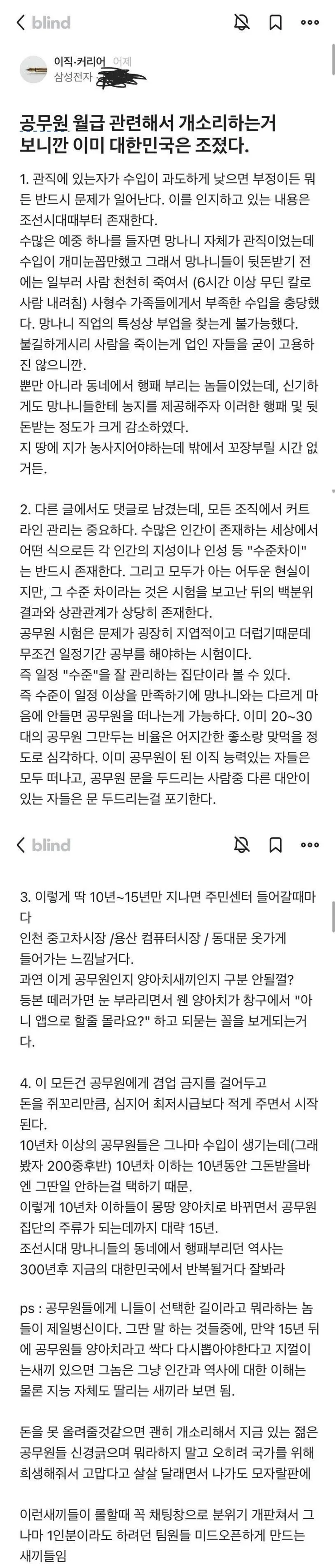 핫게간 일반직방글 보고 생각난 삼성전자 직원의 공무원 관련 일침글