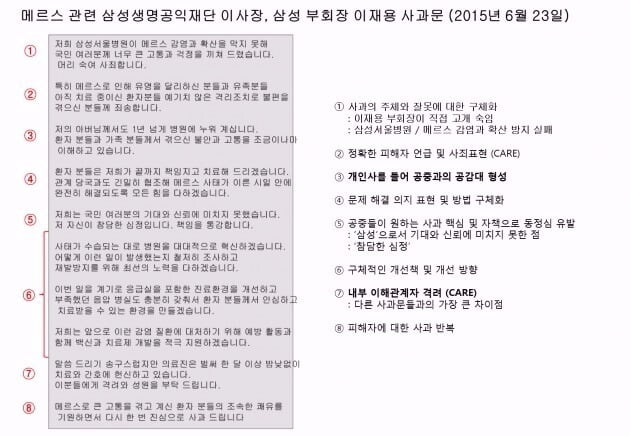 희망편 : 삼성서울병원 메르스 방역 실패에 따른 이재용 명의의 사과문