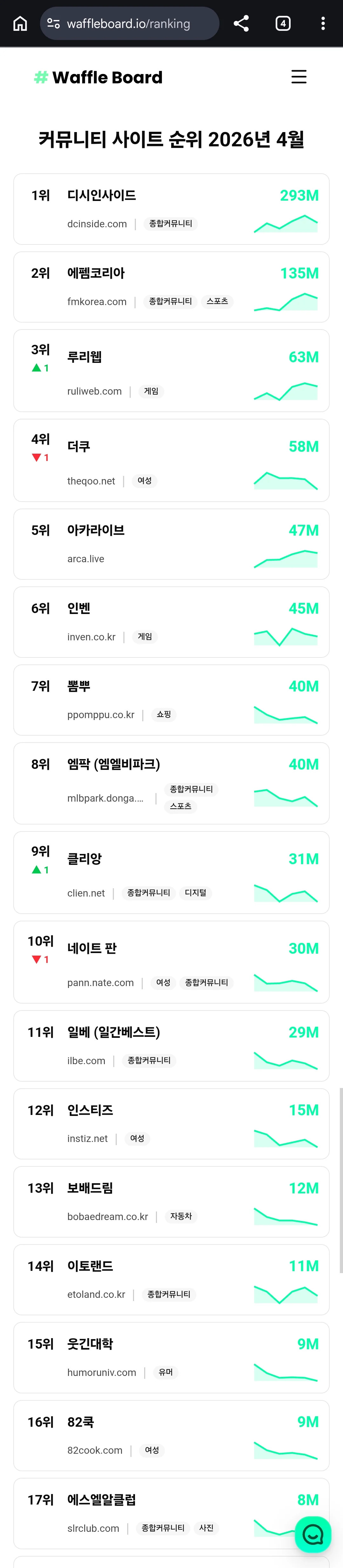 26년 4월 커뮤니티 트래픽 순위